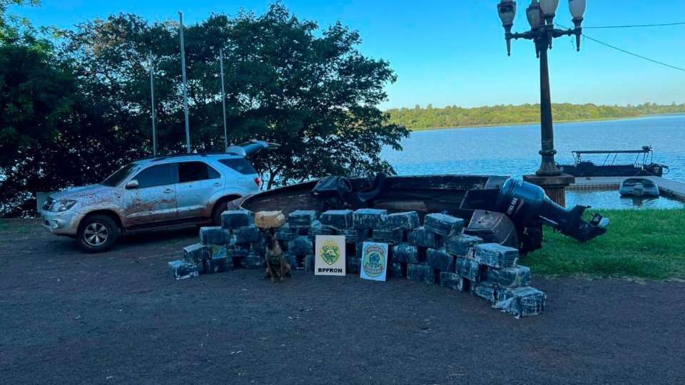 Mais de 800kg de maconha, embarcação e caminhonete foram apreendidos em ação em Pato Bragado, no Oeste do Paraná, na quinta-feira (20).