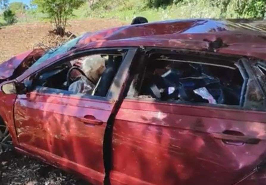 Sem conseguir frear, o veículo saiu da pista, desceu um barranco e percorreu aproximadamente entre 50 e 80 metros até parar em uma área de preservação. A força do impacto fez o carro capotar várias vezes, ficando completamente destruído — inclusive com o motor separado do monobloco.