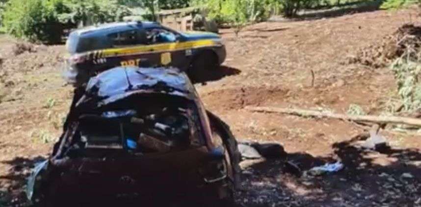 Na manhã desta terça-feira (25), um automóvel saiu da rodovia na comunidade do Mato Branco, em Chopinzinho, durante um acompanhamento tático da Polícia Rodoviária Federal. Segundo a equipe, o motorista tentou fugir ao avistar a viatura e seguiu em alta velocidade sentido Candói. Durante a tentativa de abordagem, ele perdeu o controle ao tentar acessar uma via lateral sem sinalização.