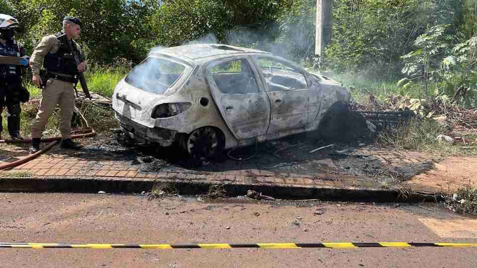 Homem foi encontrado carbonizado dentro de Peugeot 207 na região do Sanga Funda, em Cascavel, na tarde de terça-feira (9).