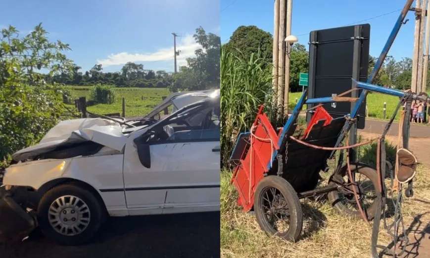 Segundo a Polícia Rodoviária Estadual (PRE), o carro tinha placas de Umuarama e seguia sentido o distrito de Casa Branca. Quando atingiu o quilômetro 191, a carroça -- que estava próximo à entrada de uma vila rural -- entrou de forma brusca na rodovia e o motorista não conseguiu parar a tempo.