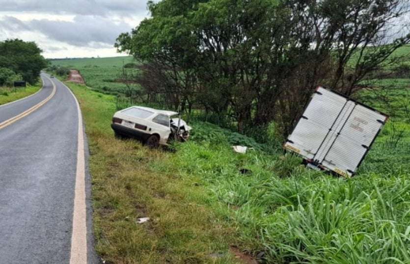 Em seguida, um caminhão Iveco Daily que trafegava sentido contrário da PR-317 atingiu frontalmente o carro e a colisão causou danos nos dois veículos.