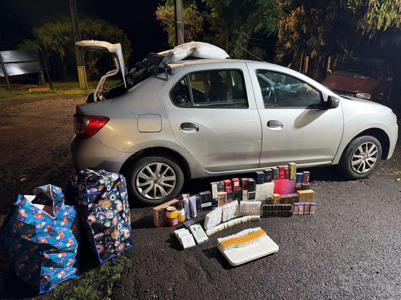 Uma operação realizada pelo Canil da 6ª Companhia do Batalhão de Polícia Rodoviária (BPRv) resultou na apreensão de uma grande quantidade de medicamentos e outros produtos contrabandeados na madrugada desta terça-feira (16), na PR-182, no município de Realeza, no Sudoeste do Paraná. A ação faz parte da Operação Protetor e ocorreu por volta da meia-noite, durante a abordagem a um veículo ocupado por três pessoas.