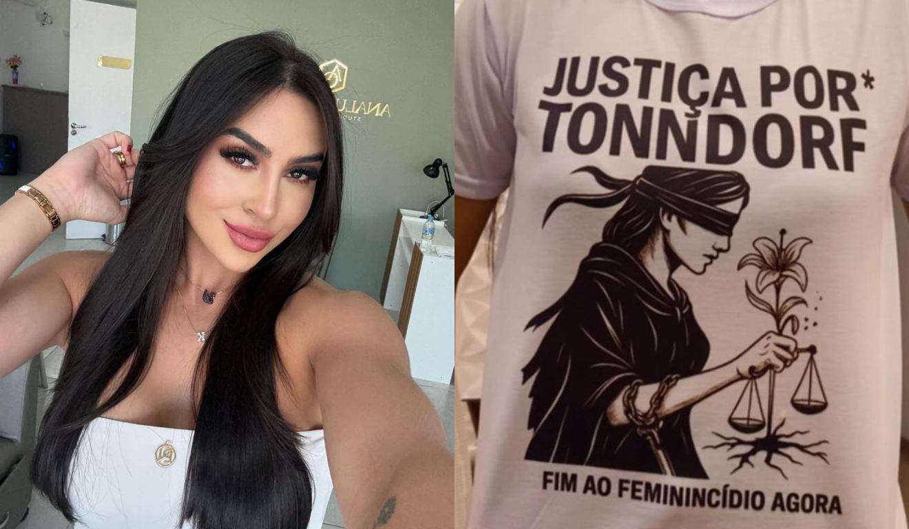 Durante o ato, participantes vestiram camisetas brancas com a mensagem “Justiça por Tonndorf. Fim ao feminicídio agora”, além de exibirem cartazes e entoarem palavras de ordem cobrando a responsabilização do agressor.