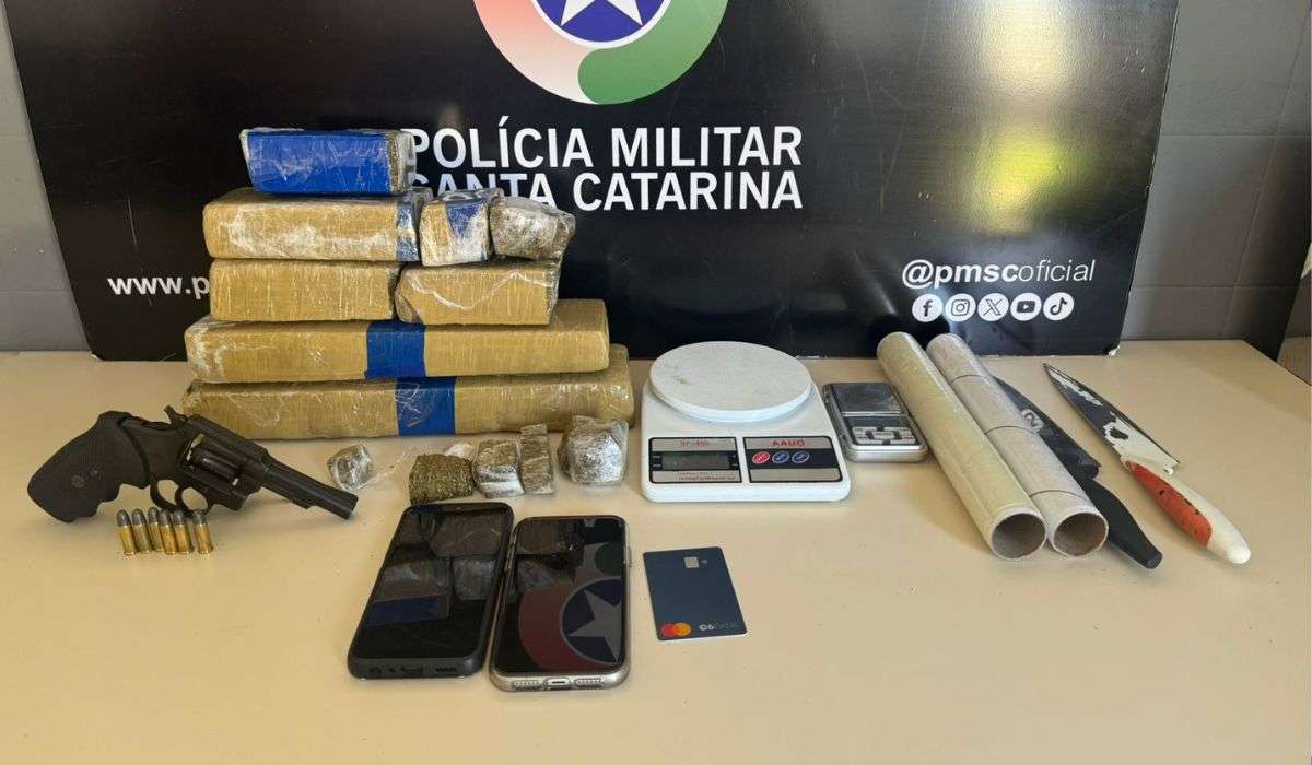 No local em que as vítimas foram encontradas, a Polícia Militar de Santa Catarina apreendeu grande quantidade de drogas e uma arma de fogo. O suspeito da violência foi preso no local.