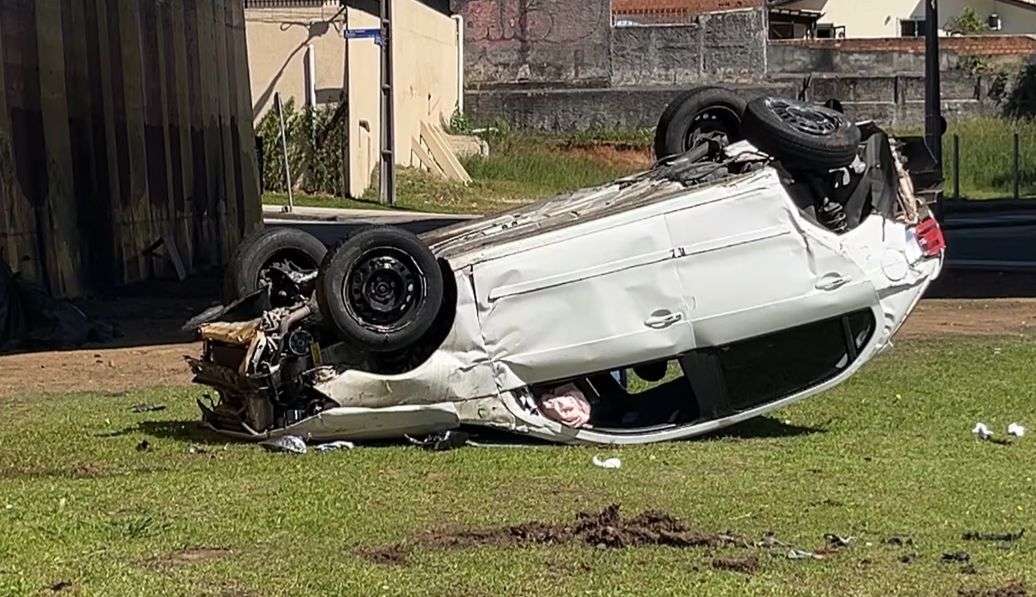 O incidente ocorreu quando outro veículo fez uma mudança repentina de faixa, levando o primeiro carro a colidir com a mureta que separa a pista da calçada. Após subir na divisória e cair do viaduto, o veículo capotou diversas vezes.