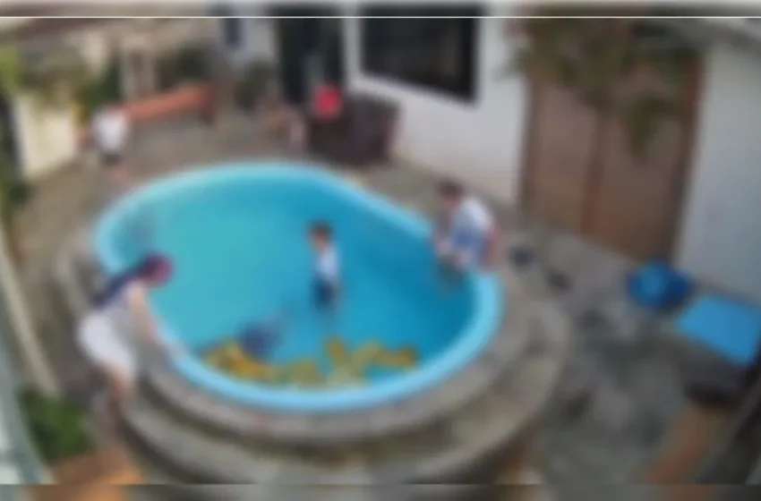 Um empresário foi resgatado pela esposa após bater a cabeça durante um mergulho e começar a se afogar em uma piscina em União da Vitória, no sul do Paraná. O caso aconteceu na última quinta-feira (1º) e foi capturado por câmeras de monitoramento da residência.