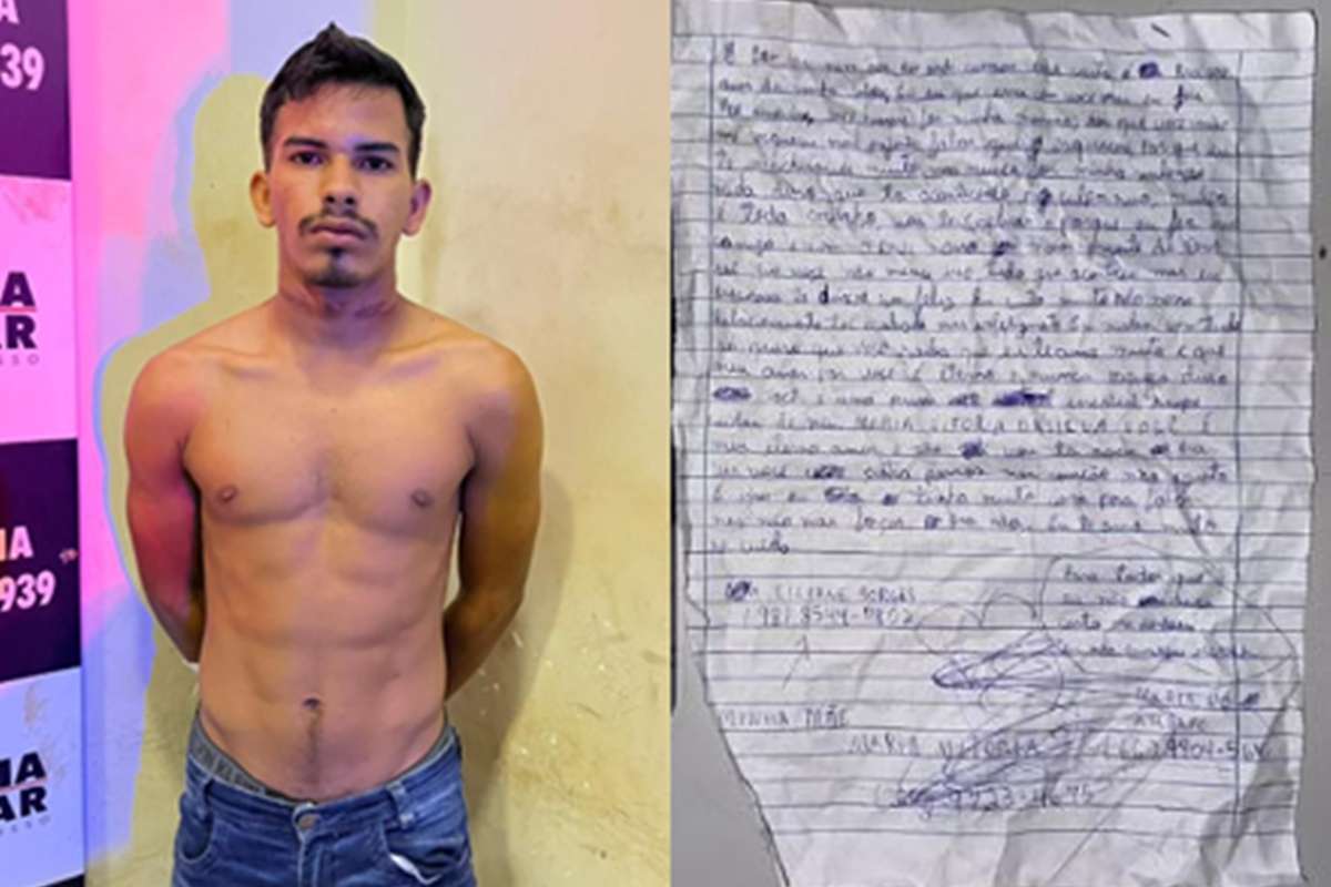 Preso após a morte do próprio filho, de apenas dois anos, Rairo Andrey Borges Lemos (foto em destaque), de 21 anos, deixou uma carta escrita à mão. O documento, apreendido pela Polícia Militar, expõe ciúmes extremos, incapacidade de aceitar o fim do relacionamento e uma tentativa de romantizar a própria violência, direcionando a maior parte do texto à ex-companheira, mãe da criança.