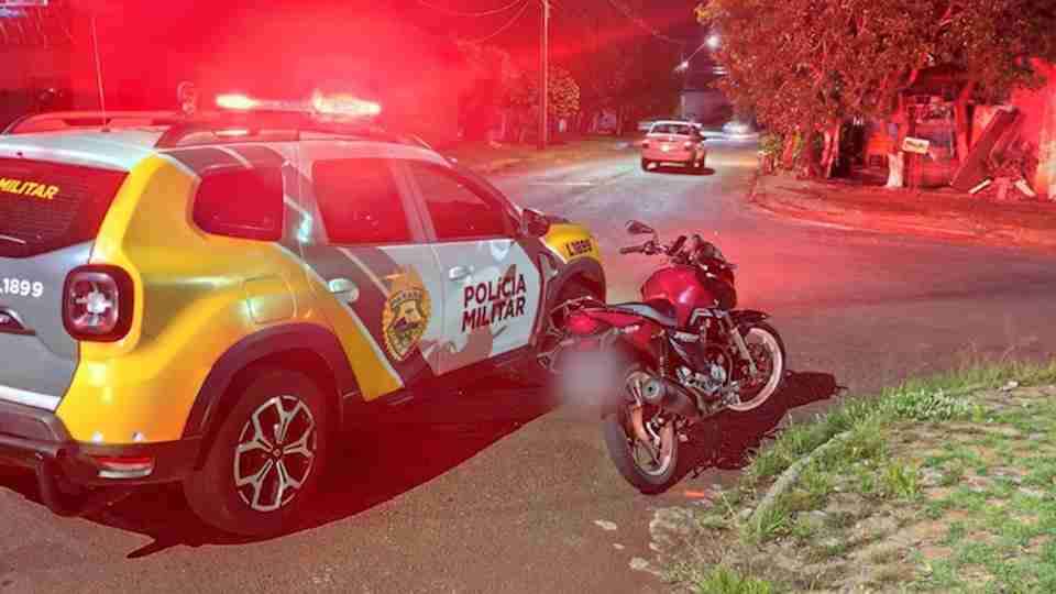 Segundo a Polícia Militar, a equipe realizava patrulhamento, quando avistou a motocicleta em alta velocidade e realizou a abordagem.