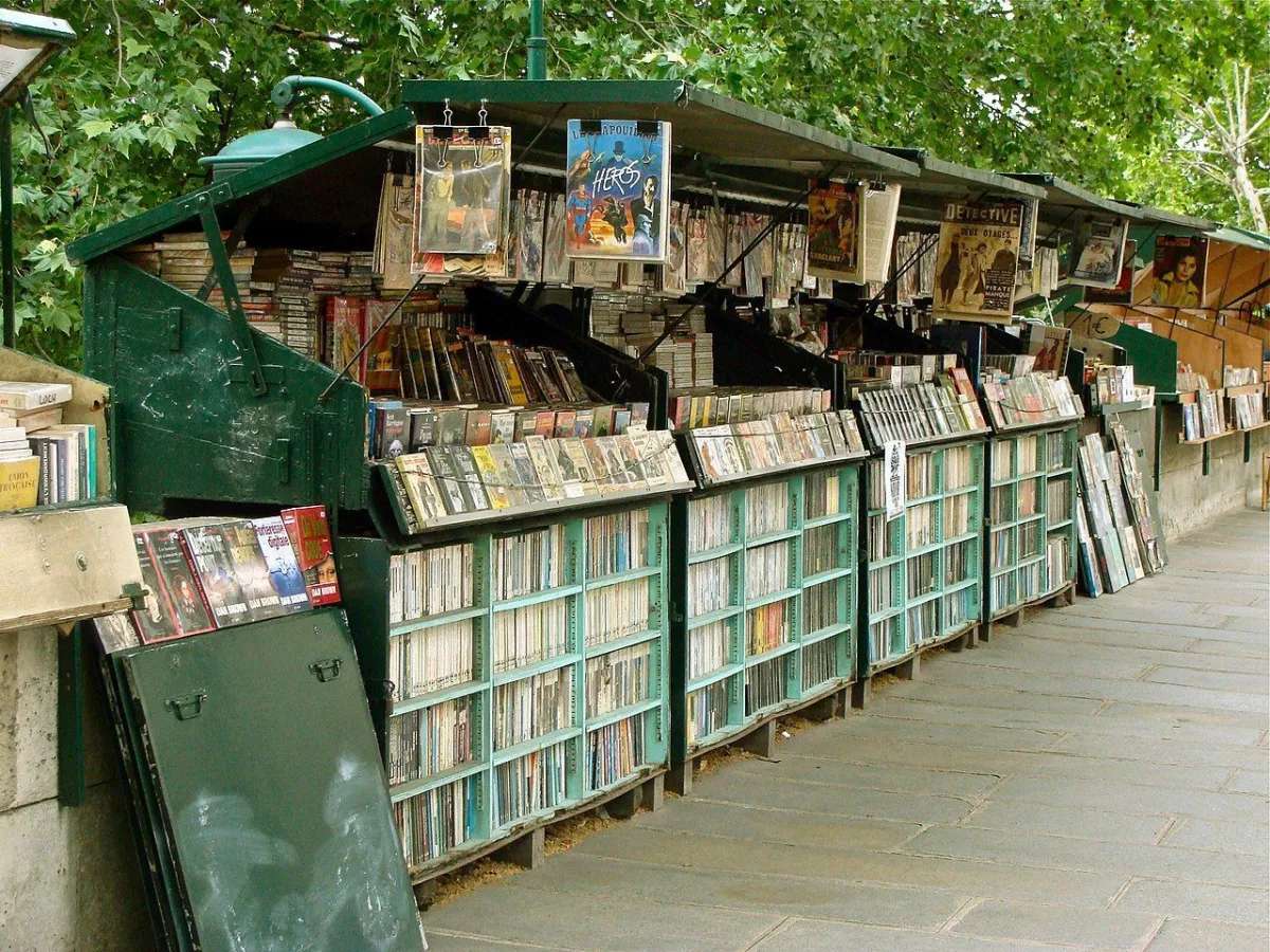 No início do século XX, a cidade padronizou o visual icônico das bancas: os vendedores trabalhavam em caixas de metal pintadas da mesma cor verde-floresta, e suas tampas abertas eram projetadas para preservar a vista da margem do rio. Hoje, cerca de 230 livreiros se estendem ao longo de aproximadamente três quilômetros do Sena, oferecendo livros antigos e contemporâneos, gravuras, selos e revistas.