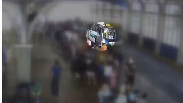 Imagens divulgadas pela polícia mostram o suspeito caminhando pelo terminal, se aproximando do ônibus e, logo depois, correndo para fora do local. Assista acima.