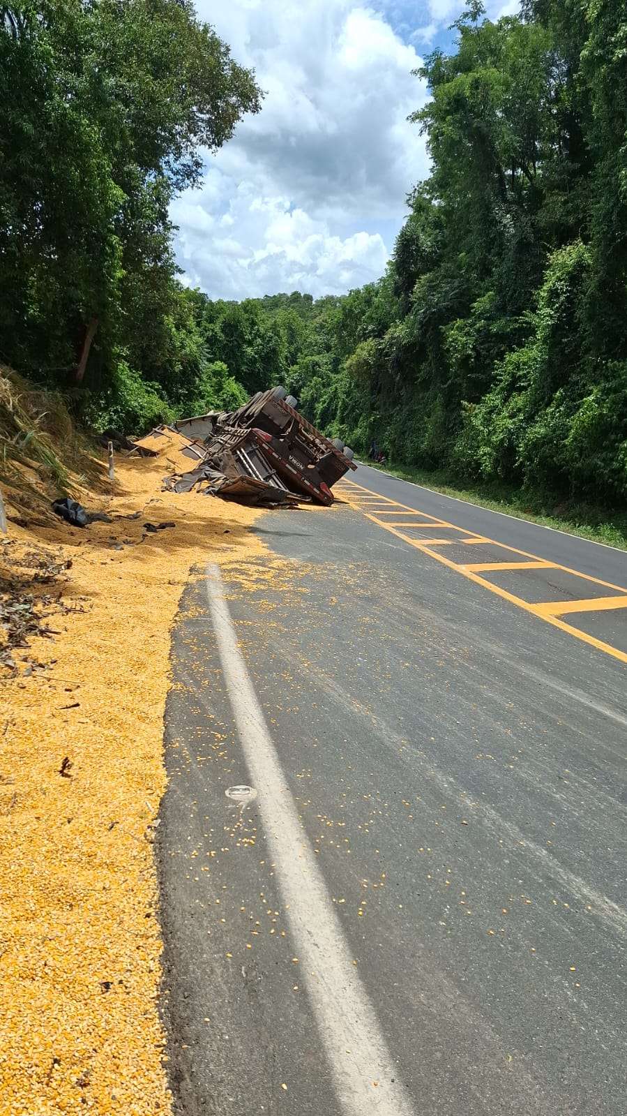 Um acidente do tipo tombamento foi registrado na manhã de sexta-feira (9) na rodovia PR-281, no município de Realeza. A ocorrência aconteceu por volta das 8h25 e envolveu um caminhão Volvo FH 440, acoplado a um semirreboque Noma.