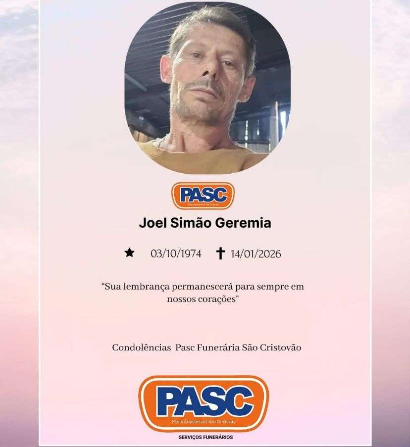 Joel Simão Geremia, de 51 anos, faleceu nesta quarta-feira (14), em Francisco Beltrão, deixando mãe, seis irmãos, demais familiares e amigos.