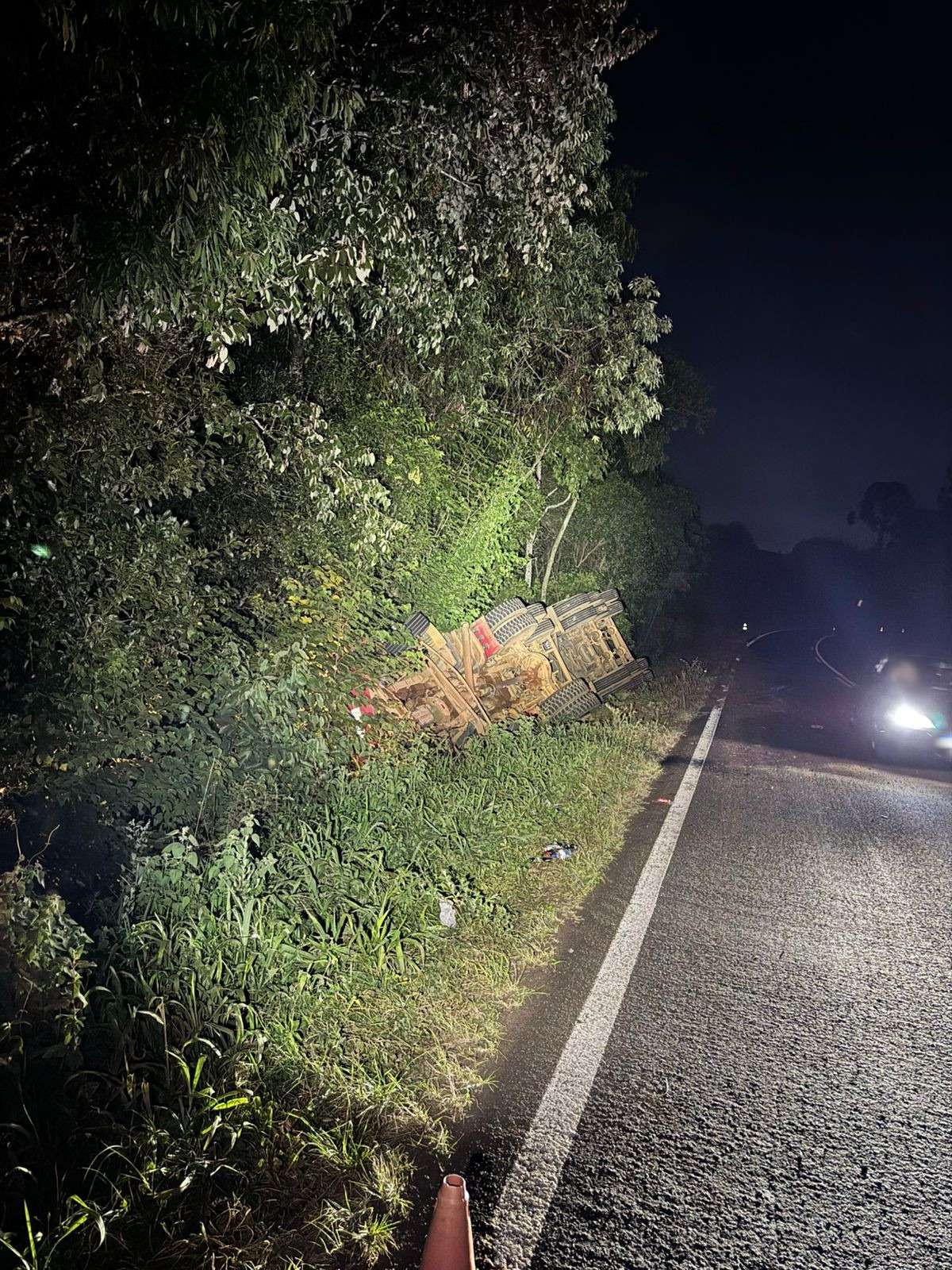 Um acidente do tipo tombamento foi registrado na noite de sábado, 31 de janeiro de 2026, na PR-493, em Bom Sucesso do Sul, Paraná. A ocorrência envolveu um conjunto de carga formado por um caminhão Scania/R124 e um semirreboque SR/Pastre, e mobilizou equipes da Polícia Rodoviária e do Corpo de Bombeiros.