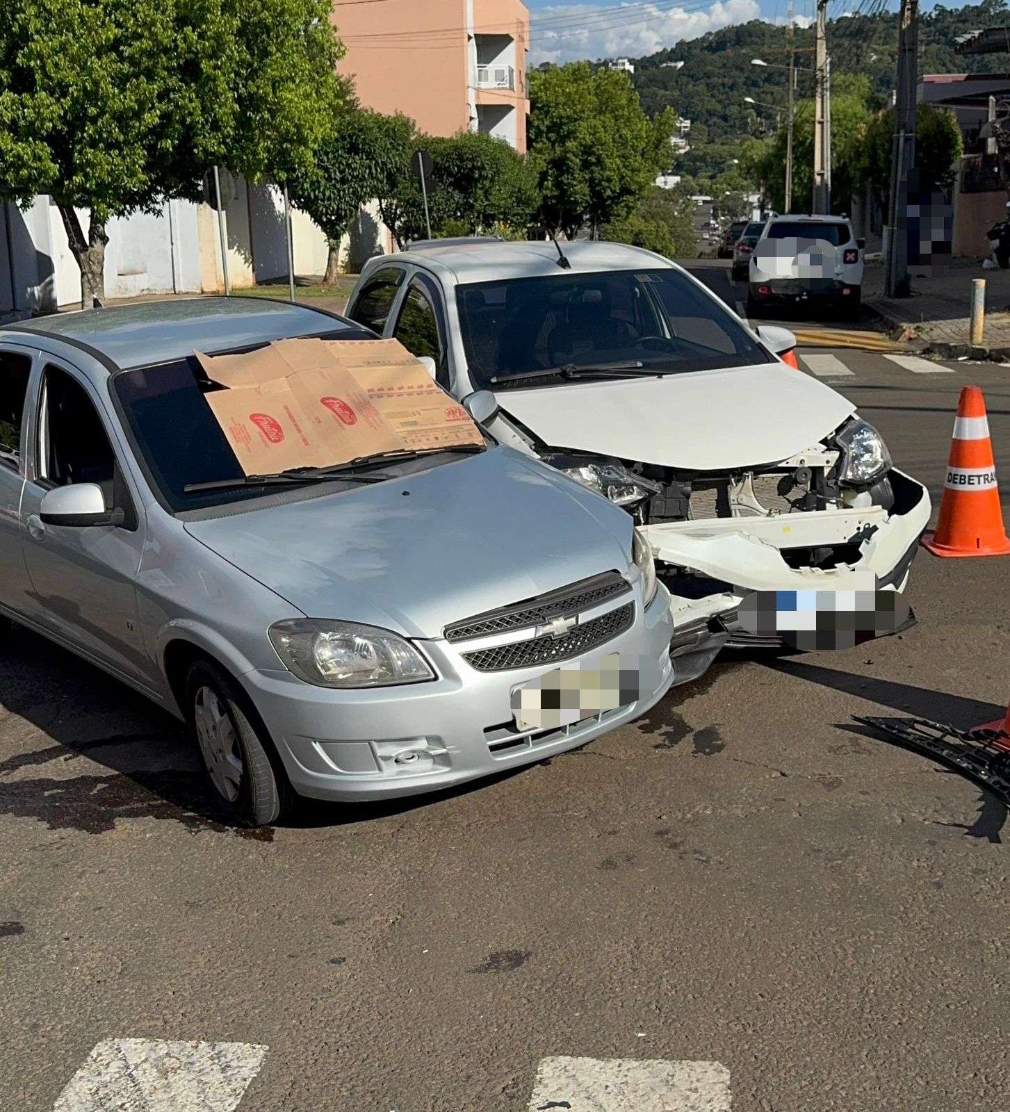Uma colisão entre um Celta e um Toyota Etios foi registrada na tarde desta quinta-feira (5), na rua Tenente Camargo com a rua Brasília, no bairro Presidente Kennedy, em Francisco Beltrão.