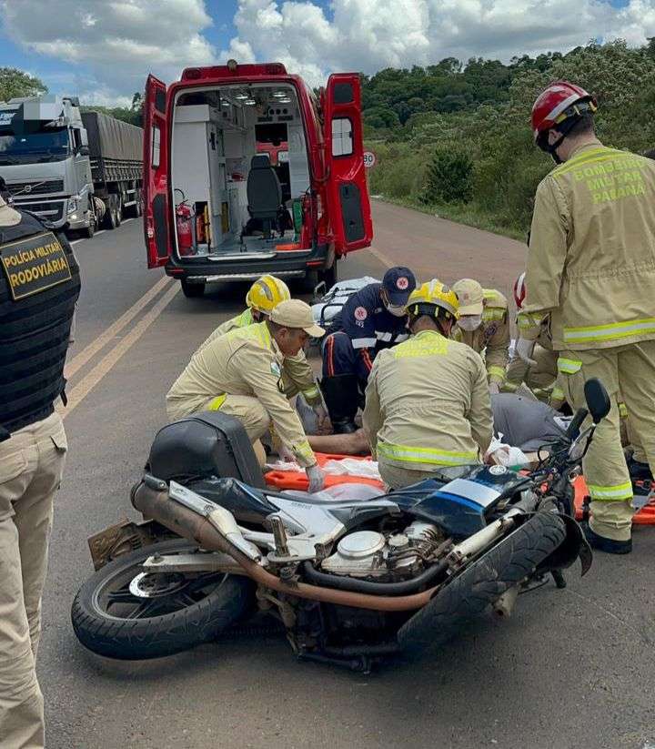 O condutor da moto sofreu ferimentos graves, apresentando fratura em ambos os braços e um corte profundo na região da perna, havendo suspeita de hemorragia. Ele foi atendido pelas equipes do SAMU e encaminhado para triagem médica, onde recebe os cuidados necessários. As circunstâncias do acidente deverão ser apuradas pelas autoridades competentes.