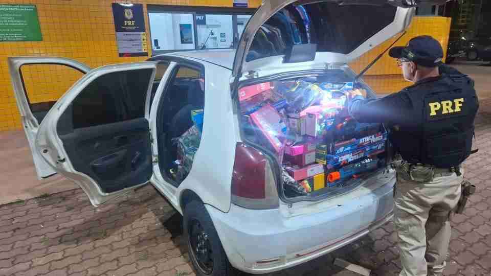 No primeiro caso, uma equipe abordou um jovem de 20 anos que dirigia um Fiat Palio carregado com brinquedos vindos do Paraguai. A carga ocupava todo o veículo e comprometia a condução. Os policiais constataram que o motorista não possuía habilitação. Segundo informações apuradas no local, ele levaria os produtos para Guamiranga. A equipe apreendeu o carro e a mercadoria.
