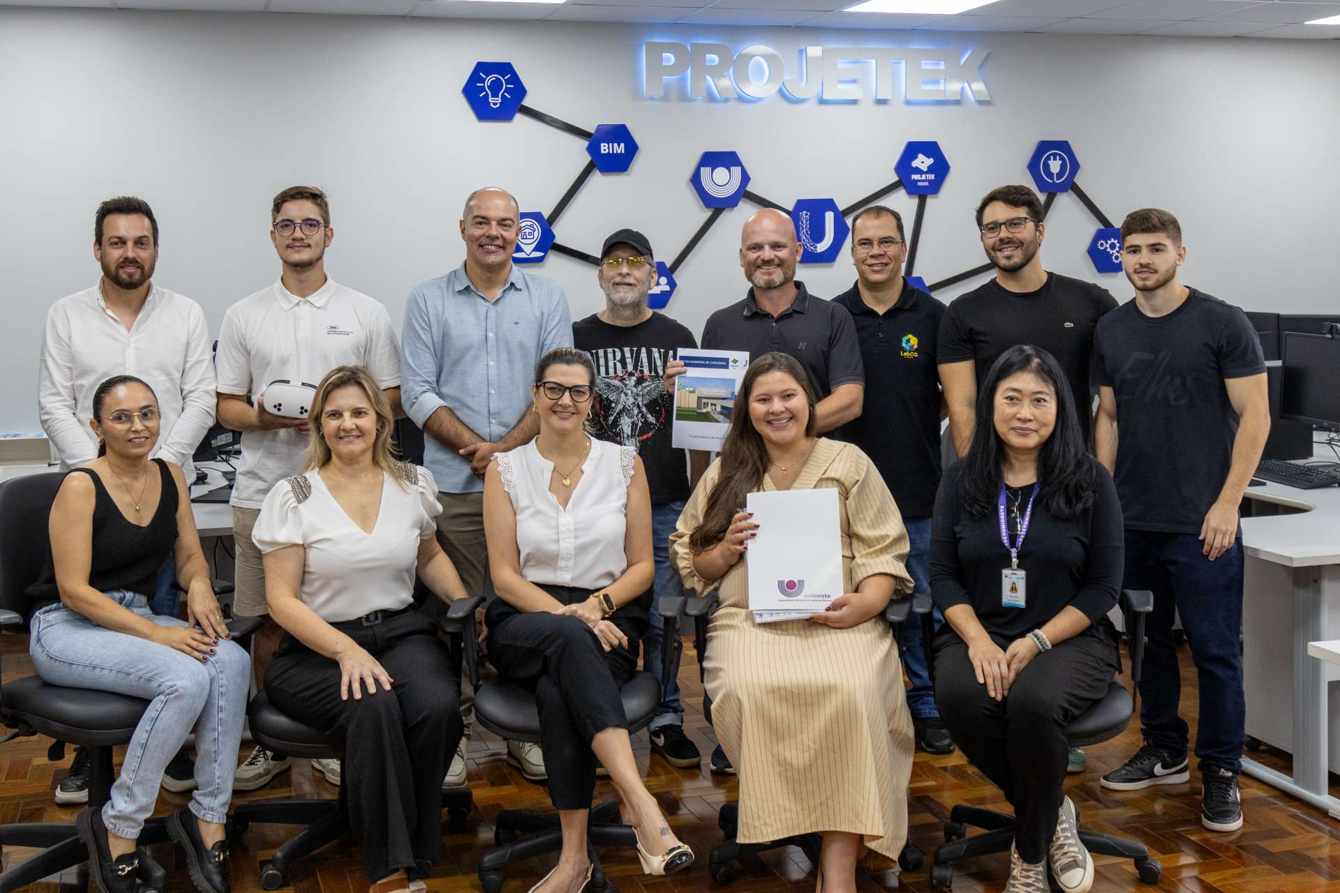 A Universidade Estadual do Oeste do Paraná (Unioeste), por meio do Escritório de Engenharia Projetek, realizou nesta quarta-feira (25) a entrega oficial do projeto arquitetônico de uma nova escola municipal para a cidade de Cafelândia. A proposta contempla uma estrutura moderna e completa para atender estudantes da Educação Infantil e do Ensino Fundamental I. Estiveram presentes na entrega os representantes do Projetek e da administração pública de Cafelândia, incluindo o prefeito Junior Motter.