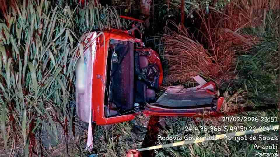 Uma pessoa morreu e três ficaram feridas em acidente na PR-092 em Arapoti, no Centro Oriental do Paraná, na noite de sexta-feira (27).