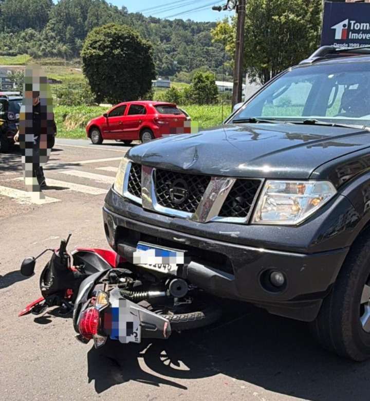 Uma colisão entre um carro e uma motocicleta foi registrada no final da manhã desta segunda-feira (2), na Avenida Júlio Assis, no bairro Industrial, em Francisco Beltrão.