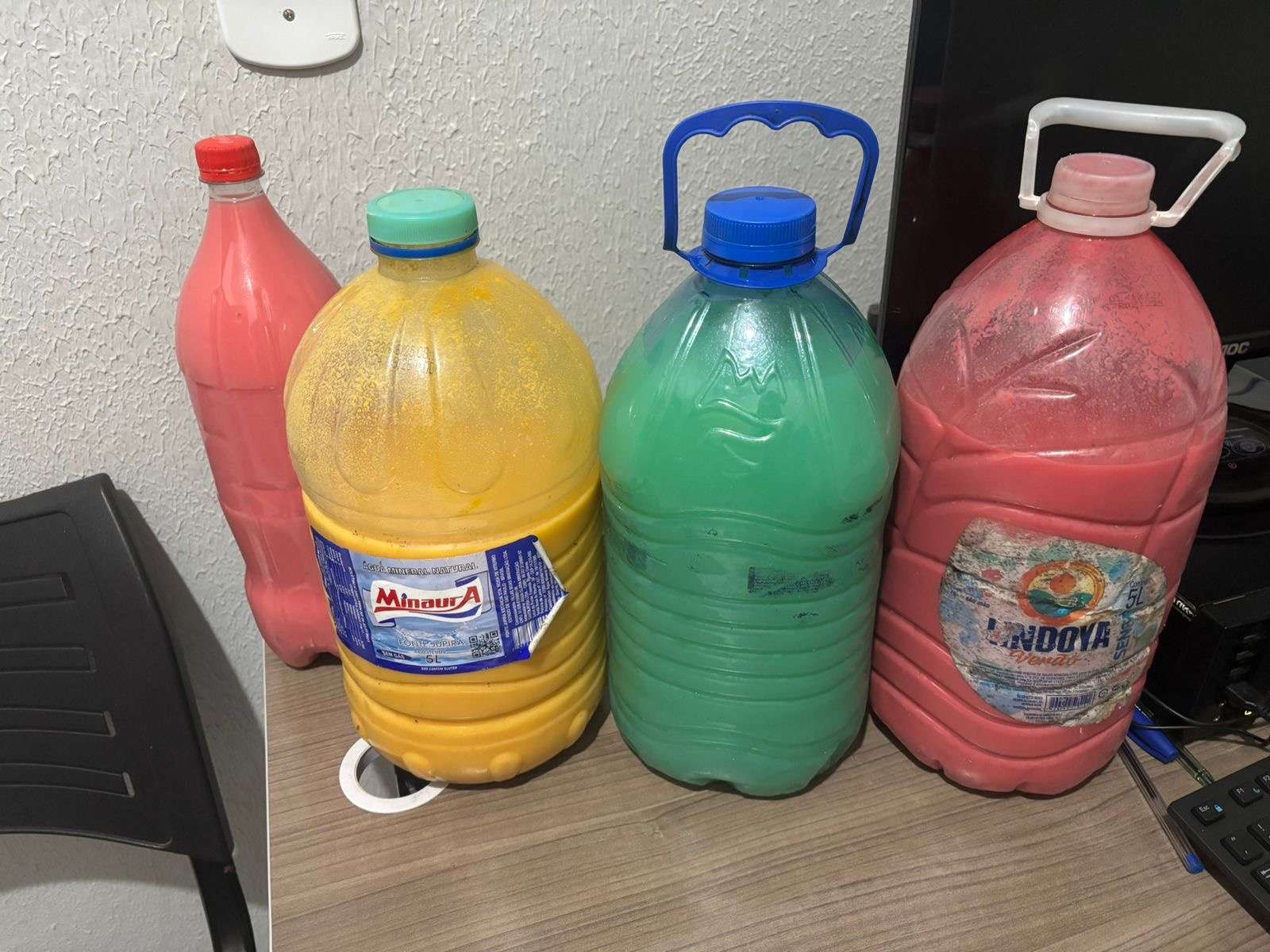 Durante as inspeções realizadas no parque de exposições, os fiscais identificaram a comercialização suspeita de bebidas utilizadas para a produção do popular “capeta”. Os líquidos estavam armazenados em recipientes inadequados, incluindo embalagens de amaciante, o que levantou suspeita de possível adulteração.