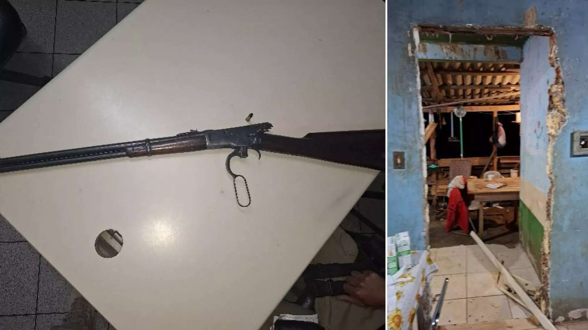 Diante da violência, o irmão mais novo, de 15 anos, pegou uma arma de fogo modelo Winchester calibre .38 e efetuou um disparo que atingiu Elias na perna esquerda, cessando as agressões.