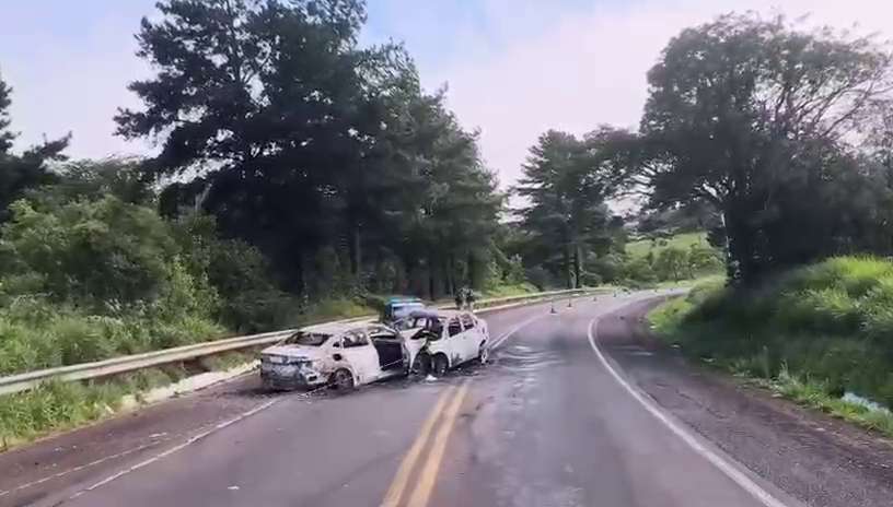 Após o impacto, os veículos pegaram fogo e ficaram destruídos. Os três ocupantes do carro e uma passageira do táxi morreram na hora.