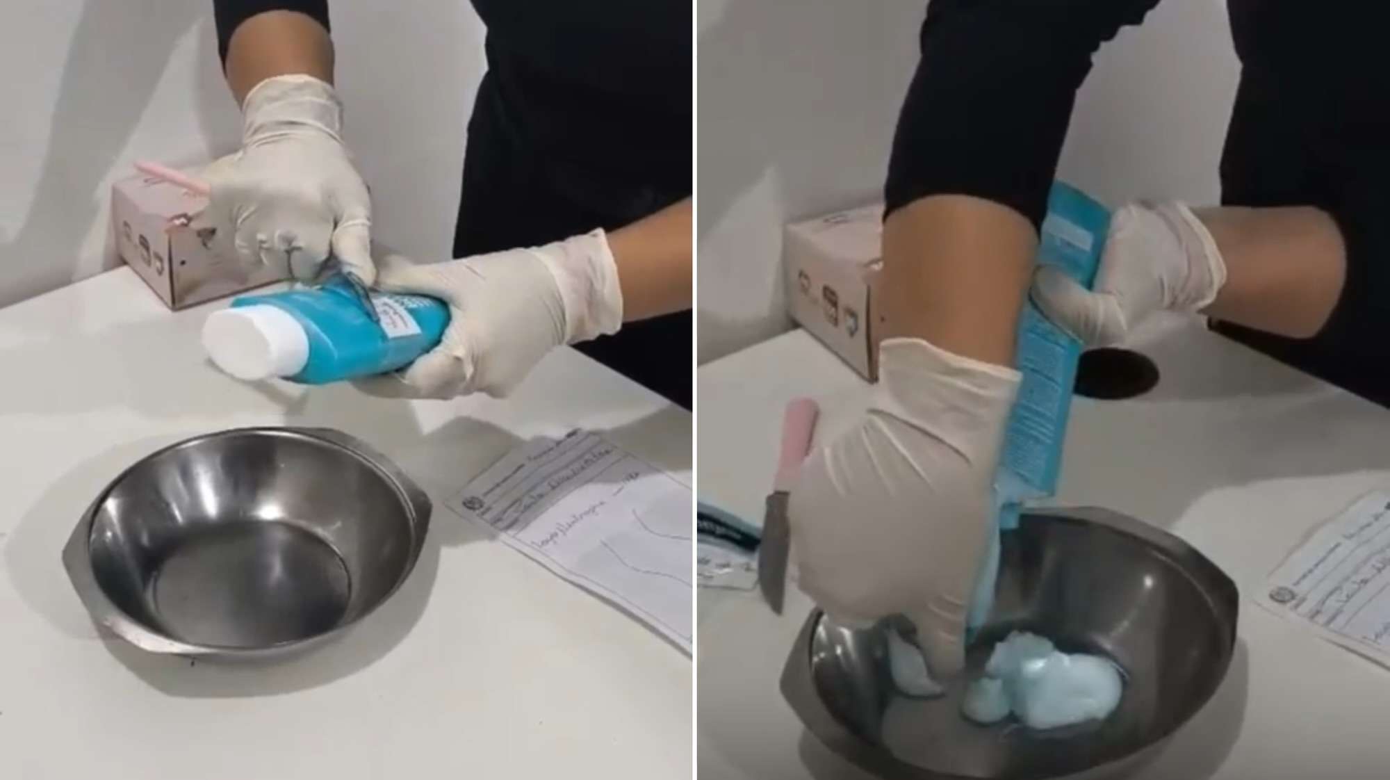A profissional compareceu à unidade prisional para realizar a entrega de produtos de higiene pessoal destinados a um interno. Durante o procedimento de revista dos materiais, os policiais penais identificaram irregularidades no frasco de creme, que estava acompanhado de receita médica. Com o auxílio do scanner da unidade, foram encontrados três smartwatches ocultos no interior do recipiente.