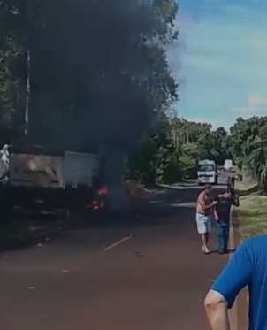 Com o impacto, o caminhão pegou fogo praticamente de forma imediata, sendo rapidamente tomado pelas chamas. A situação gerou momentos de tensão para quem presenciou o acidente, devido à intensidade do incêndio e ao risco de maiores proporções.