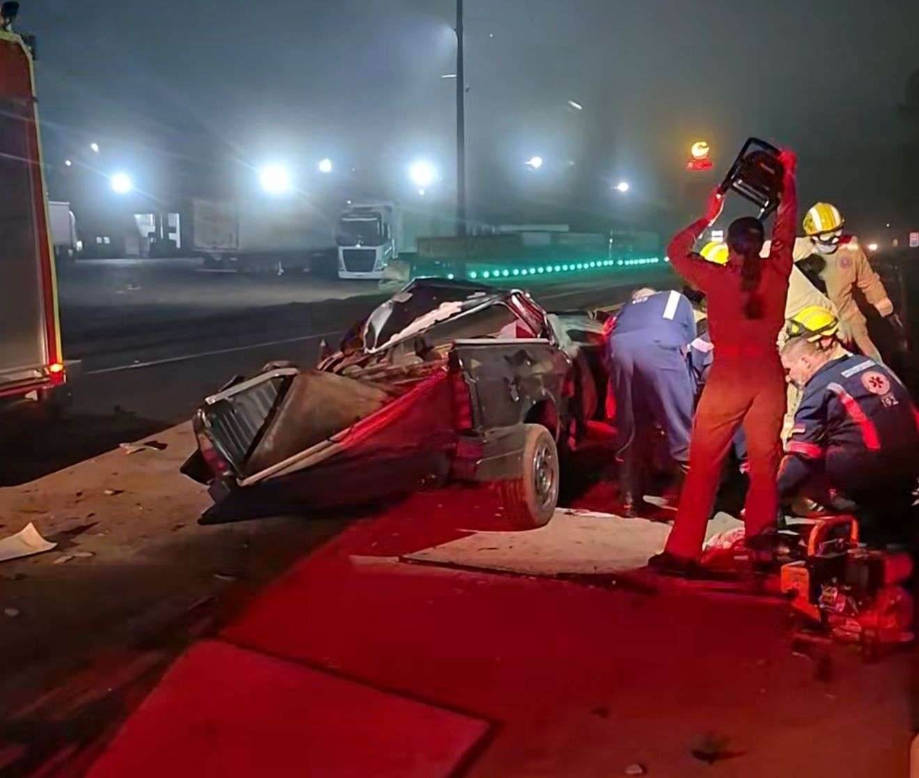 As vítimas ainda não foram identificadas. A Saveiro possui placas no padrão Mercosul.