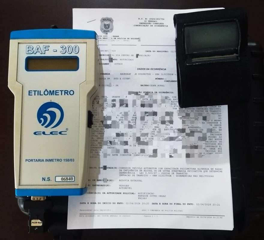 A ocorrência foi registrada por equipes da 3ª Companhia do Batalhão de Polícia Rodoviária (BPRv), por meio do Posto Policial Rodoviário de Goioerê, durante intensificação da fiscalização nas rodovias estaduais. A ação faz parte das medidas preventivas adotadas no feriado, com foco na redução de acidentes relacionados ao consumo de álcool.