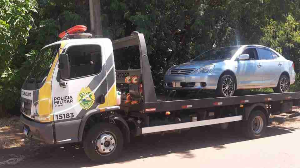 Um veículo com diversas irregularidades de trânsito foi apreendido pela Polícia Militar na tarde deste sábado (4), na Rua Epitácio Pessoa, no bairro Parque São Paulo, em Cascavel.