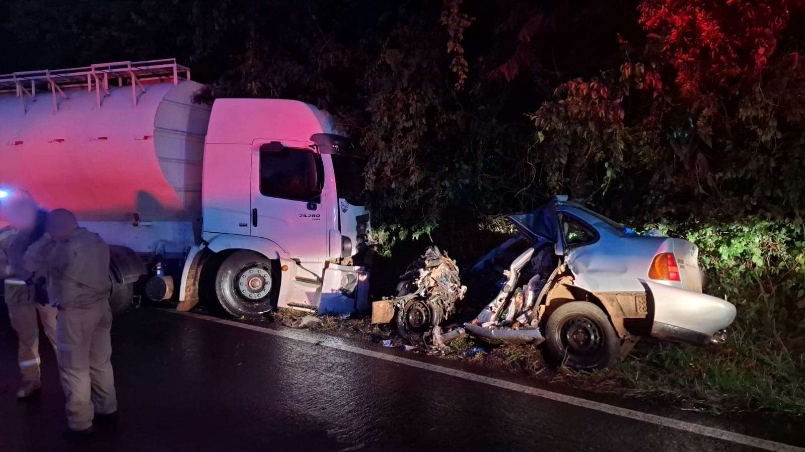De acordo com as informações apuradas no local, a colisão foi do tipo frontal e envolveu um automóvel VW Polo Classic e um caminhão VW 24.280. O carro era conduzido por um homem, que não teve a identidade divulgada, e seguia no sentido de Dois Vizinhos a Verê. Já o caminhão, conduzido por um homem de 41 anos, trafegava no sentido contrário.