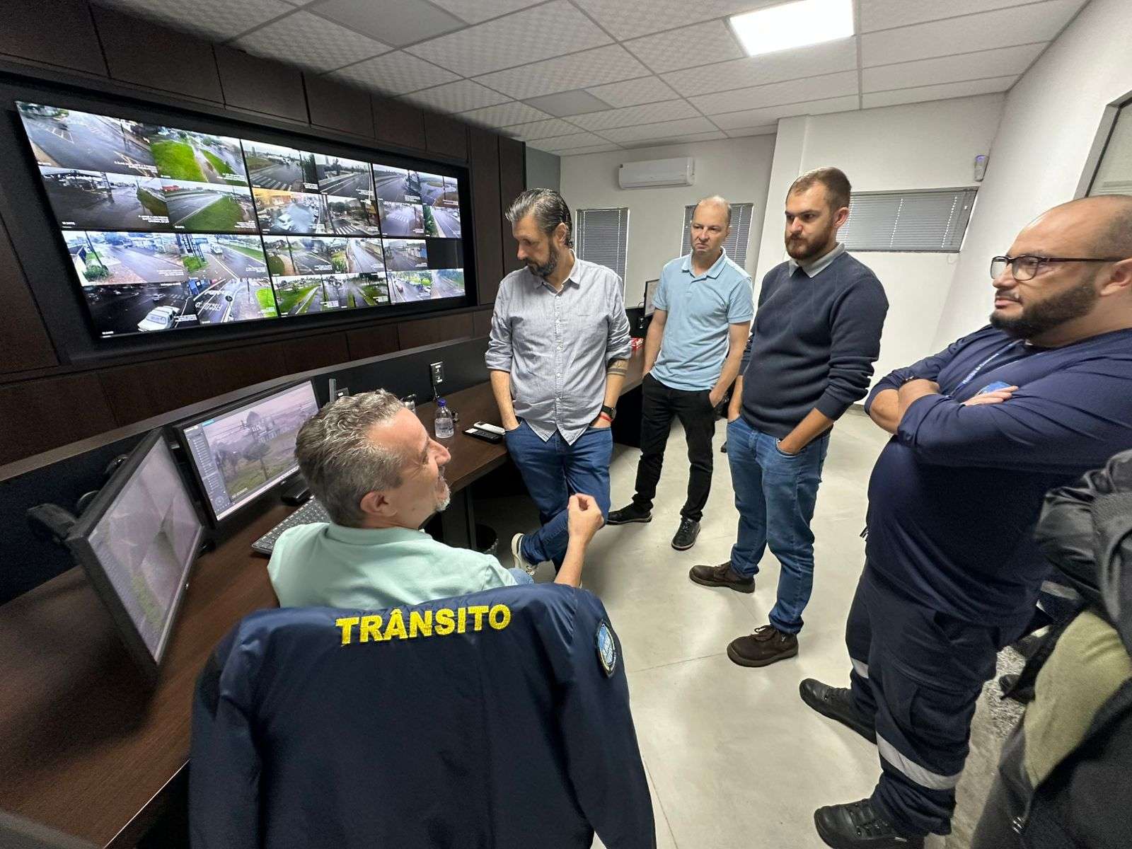 Outro destaque da visita foi o conhecimento do sistema de muralha digital de Guarapuava, desenvolvido em parceria com a secretaria responsável pelo trânsito da cidade. A tecnologia integra câmeras de monitoramento e ferramentas de análise que auxiliam na identificação de comportamentos suspeitos, contribuindo para a prevenção e inibição de crimes.