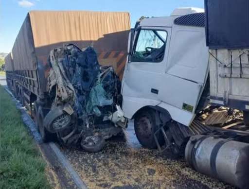 Um deles, onde estavam os três feridos, rodou na pista. O outro, onde estavam os jovens, foi arrastado e prensado contra outra carreta.