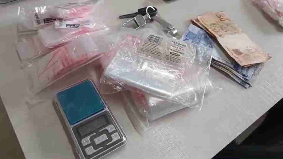 O suspeito também informou que mantinha mais droga em casa e autorizou a entrada da equipe na residência, localizada na Rua Nilo Cairo. No local, os policiais encontraram duas sacolas, uma com 27 porções de cocaína e uma balança de precisão com resquícios da substância e outra com diversas embalagens utilizadas para o fracionamento da droga.