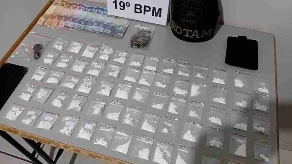 Durante a revista, os policiais encontraram com ele 20 porções de cocaína, já fracionadas e prontas para venda, além de dinheiro e um celular. Outros homens que estavam no local foram abordados, mas nada de ilícito foi localizado.