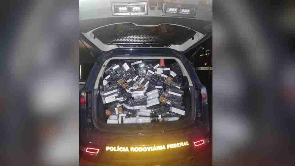 Na vistoria, os policiais localizaram um fundo falso na parte traseira da cabine, atrás do banco do passageiro. Dentro do espaço, foram encontrados diversos aparelhos, incluindo modelos de alto custo, como iPhones 17 Pro Max.