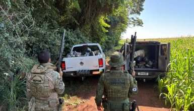 Na manhã desta sexta-feira (24), uma operação conjunta entre o Batalhão de Polícia de Fronteira (BPFRON) e a Polícia Federal resultou na apreensão de quase 400 quilos de maconha em uma área rural de Guaíra, no oeste do Paraná. A droga, que veio do Paraguai, foi localizada após patrulhamento das equipes na região.