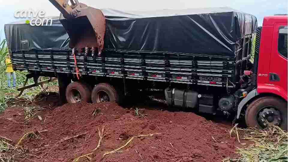 Foram feitas tentativas de retirada do caminhão com apoio de produtores rurais da região, mas a operação não teve sucesso devido à chuva constante, que dificultou o acesso ao local.