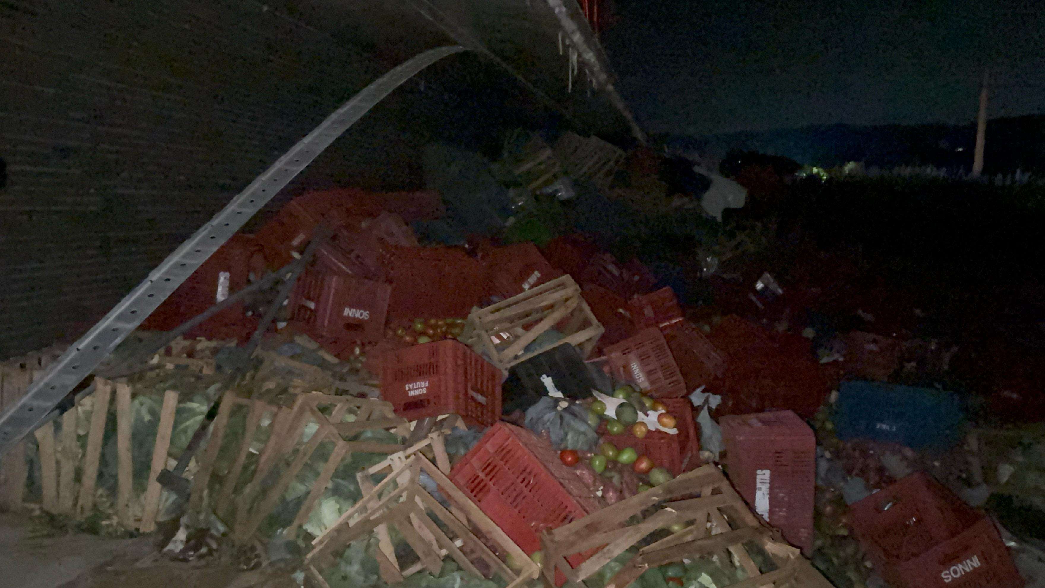 Na noite desta quarta-feira (19), um acidente grave foi registrado no trecho da PR 566, que liga Francisco Beltrão à comunidade Barra Grande. De acordo com as informações preliminares, um caminhão Volvo FH carregado de verduras, que seguia da comunidade em direção a Francisco Beltrão perdeu o controle da direção, saiu da pista e acabou tombando.