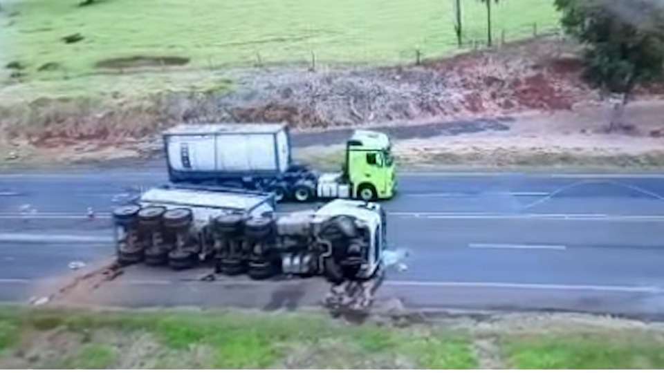 No entanto, o caminhoneiro não conseguiu evitar o atropelamento do motorista que foi lançado para fora do veículo. Isso porque a vítima, que ainda não foi identificada, caiu debaixo das rodas do veículo..
