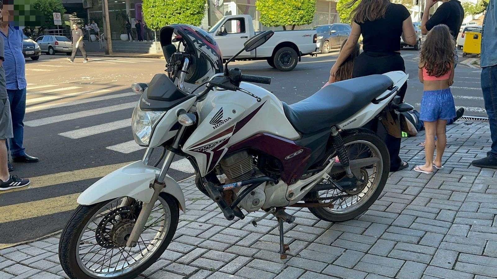 Na tarde desta sexta-feira (04), ocorreu um acidente envolvendo uma Honda Titan 150 e uma Ford Ranger na Rua Ponta Grossa, esquina com a Rua Octaviano Teixeira dos Santos.