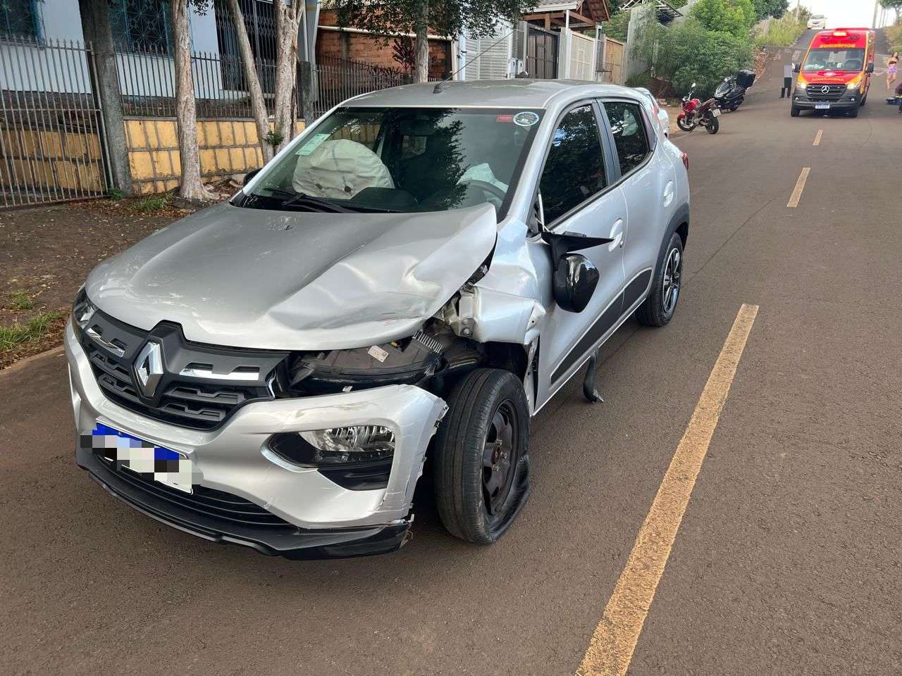 Na tarde desta terça-feira (15), uma colisão foi registrada no bairro Pinheirinho, em Francisco Beltrão, envolvendo um Renault Kwid e uma motocicleta Honda 160.