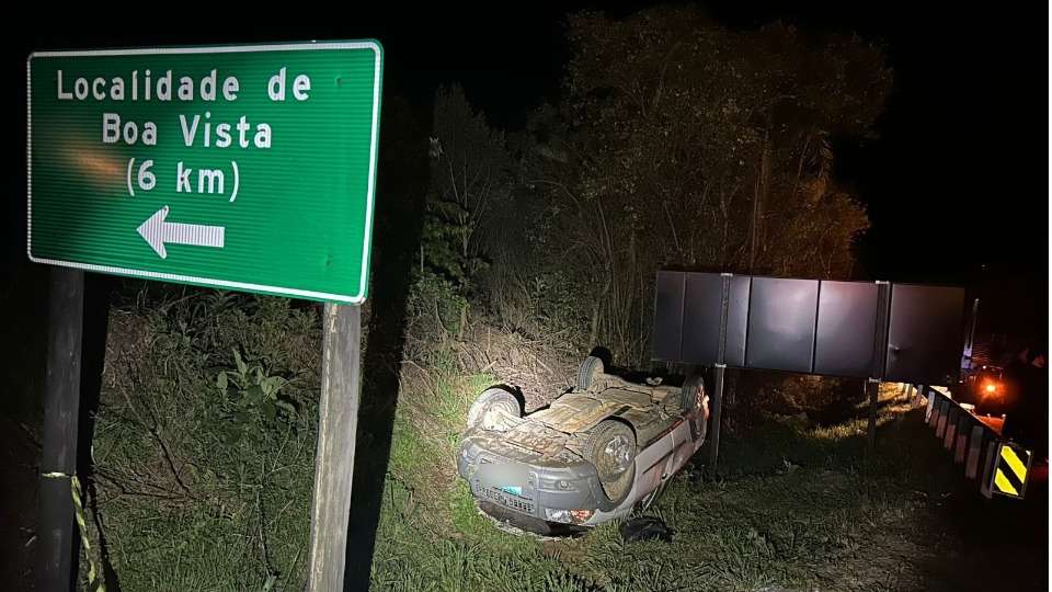 De acordo com o relato do condutor, ele estava passando por um trecho sinuoso da rodovia quando perdeu o controle da direção, saiu da pista e colidiu contra um barranco, o que causou o capotamento do veículo. O acidente resultou em danos materiais no automóvel.