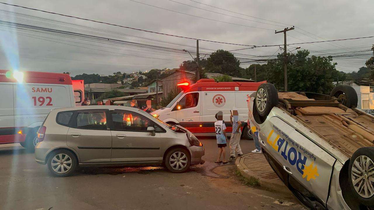 De acordo com as informações, um veículo Honda Fit trafegava pela Rua Santo Inácio quando colidiu com um Fiat Cronos. Com o impacto, o Fiat acabou capotando.