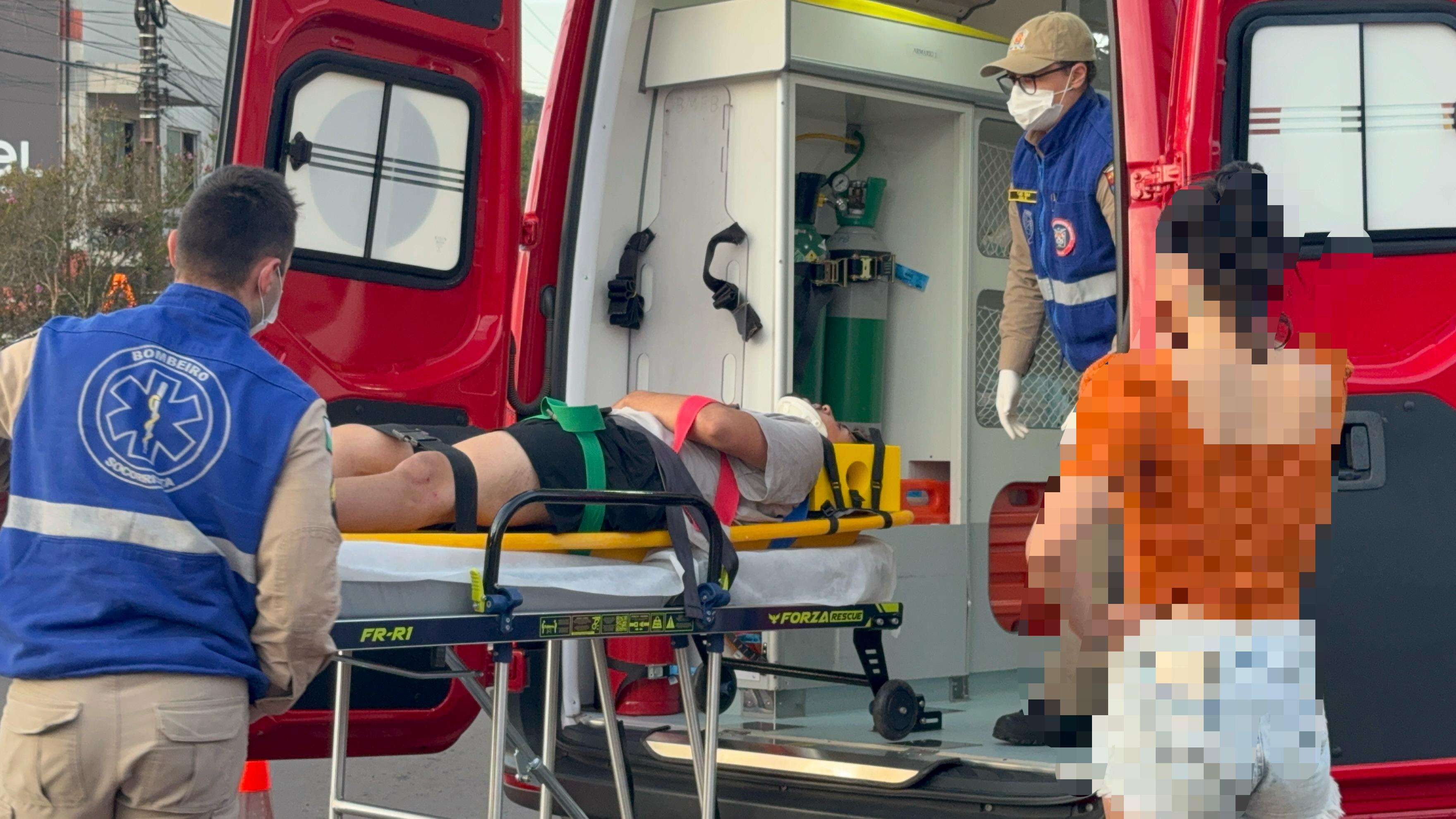 Na motocicleta estavam dois rapazes, que sofreram ferimentos moderados e foram atendidos no local pelo Corpo de Bombeiros, sendo encaminhados para atendimento médico hospitalar.