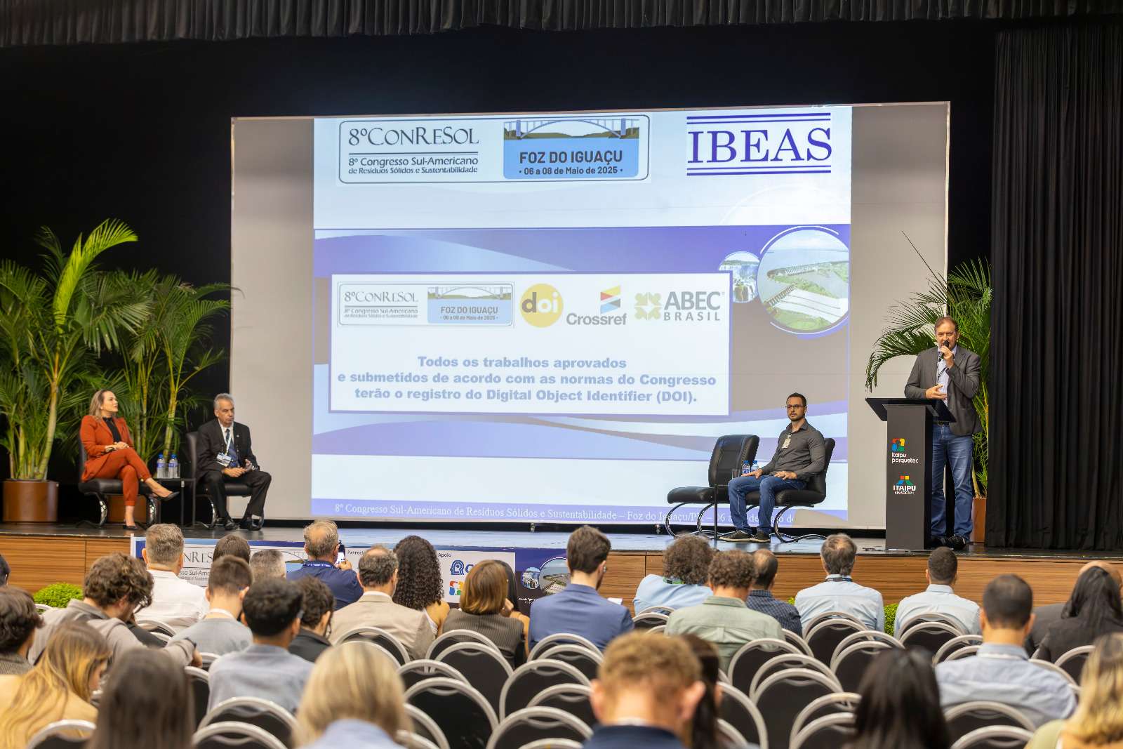 Começou nesta terça-feira (6), no Cineteatro dos Barrageiros, na usina de Itaipu, a 8ª edição do Congresso Sul-Americano de Resíduos Sólidos e Sustentabilidade (Conresol). A programação do evento se estende até a próxima quinta-feira (8) e contará com a apresentação de 350 trabalhos técnicos, abordando diversos temas do setor, tais como logística reversa, ciclo de vida dos produtos, novas tecnologias, políticas públicas, legislação, entre outros.