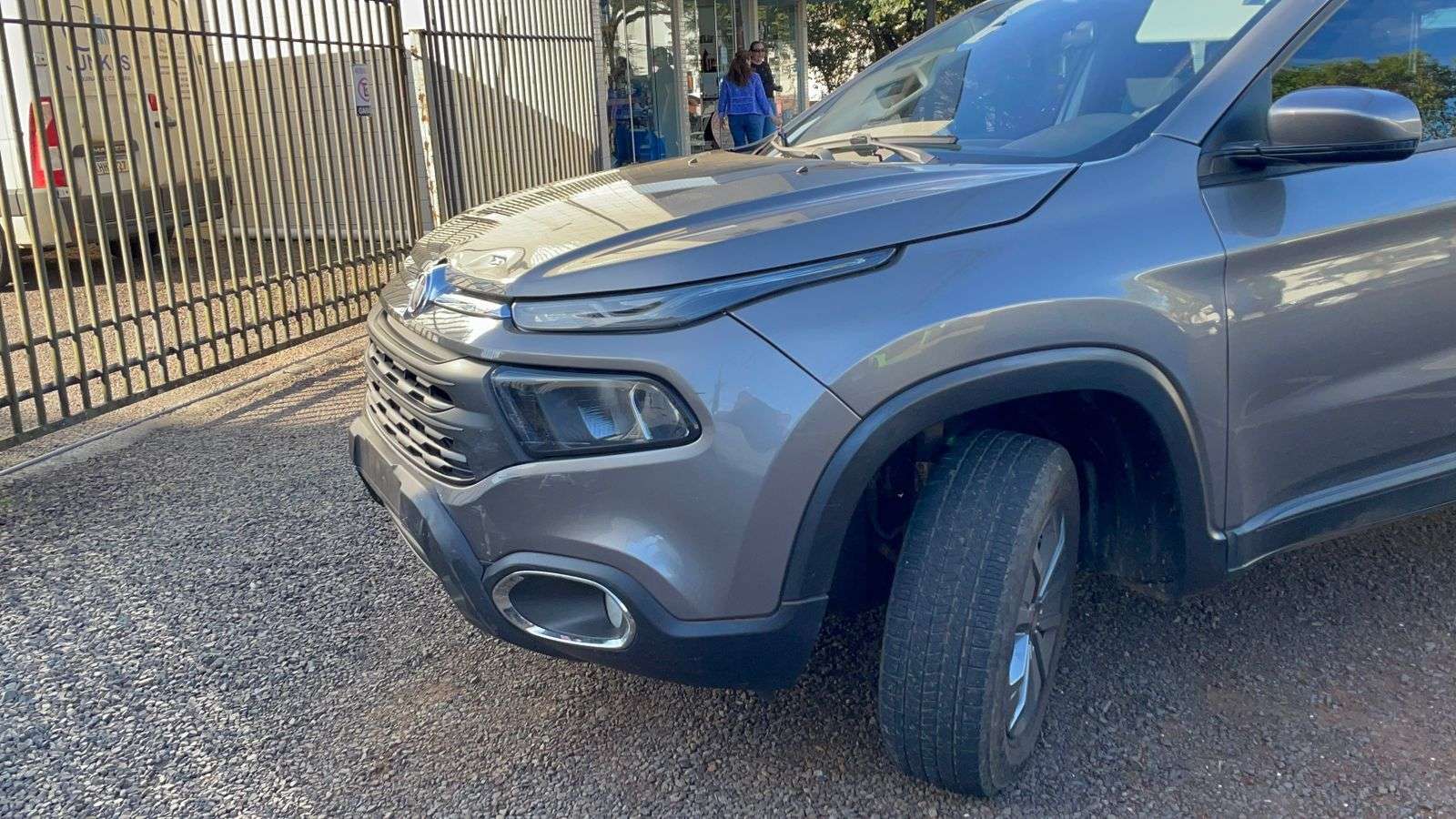 A colisão envolveu uma caminhonete Fiat Toro e um automóvel Volkswagen Gol.