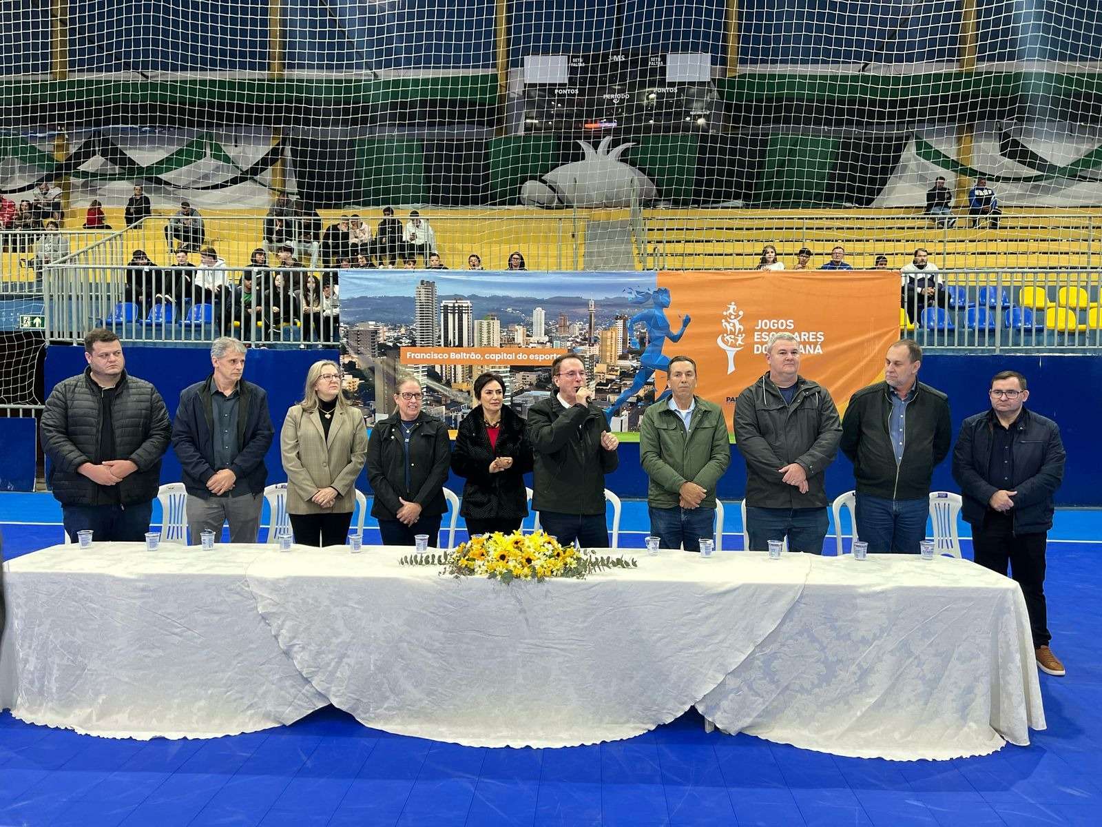 “Estamos vivendo um grande momento aqui, hoje, que representa todo nosso esforço e o bom momento do nosso esporte de base, das escolinhas, da diversificação de modalidades e da aposta que nosso governo faz no futuro dos beltronenses através da prática esportiva”, destacou o prefeito Antônio Pedron durante a abertura da cerimônia.